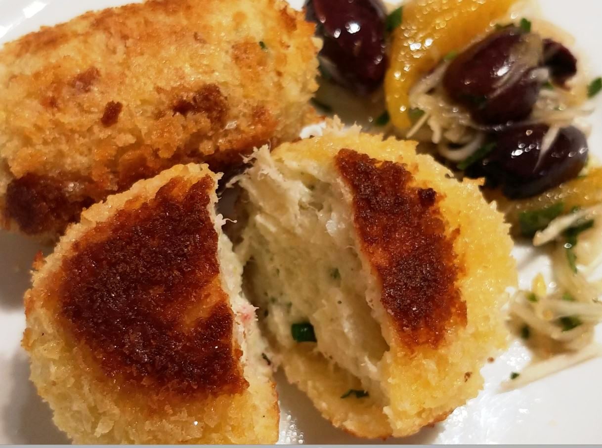 Think crispy croquettes filled with unctuous soft bacalao, ricotta and pecorino and chive stuffing served with an olive, orange and fennel salad on a leisurely ride with the awesome Pinot Grigio : pear, quince, yeast and toasty heaven!